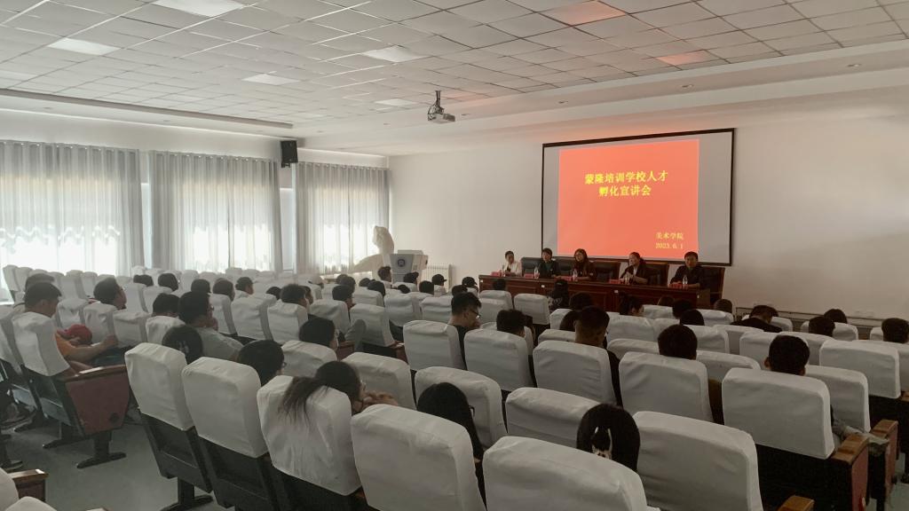 為深入開展學(xué)習(xí)貫徹習(xí)近平新時代中國特色社會主義思想主題教育,扎實推進我院就業(yè)工作,6月1日下午美術(shù)學(xué)院邀請內(nèi)蒙古蒙隆培訓(xùn)學(xué)校校長白銀花和教學(xué)負責(zé)人劉瑞紅在美術(shù)樓四樓階梯教室為2023屆畢業(yè)生舉辦了人才孵化專場宣講會。美術(shù)學(xué)院2019級在校畢業(yè)生80余人聽取了宣講會。