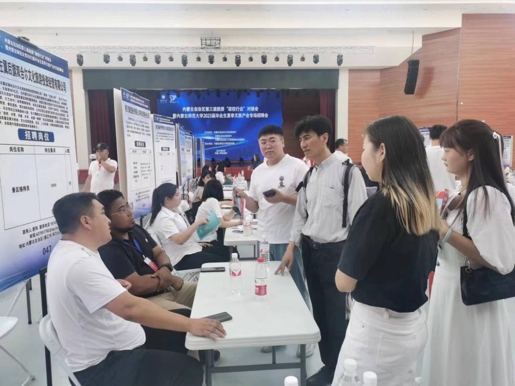 6月15日,由內(nèi)蒙古自治區(qū)文旅廳、教育廳和人社廳共同主辦的自治區(qū)第三屆文化和旅游“政校行企”對接會暨全區(qū)旅游院校書記校(院)長訪企拓崗促就業(yè)專項交流會在內(nèi)蒙古師范大學(xué)大學(xué)舉行,呼和浩特民族學(xué)院公共管理學(xué)院院長哈斯同力嘎出席,副院長額爾敦格日樂、文化產(chǎn)業(yè)管理教研室主任馬冬梅和部分教師參加了本次會議,文化產(chǎn)業(yè)管理和旅游管理專未就業(yè)的部分學(xué)生參加了招聘會。