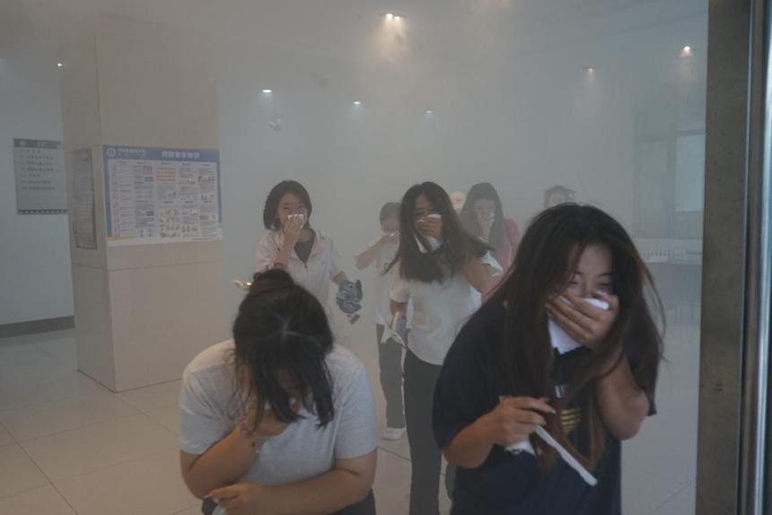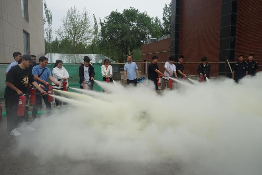 首先,在綜合樓實驗室進行授課,為師生講解消防器材的種類、使用、滅火方法,火災逃生疏散、應急自救、緊急救援等相關知識。隨后,開展逃生應急演練,隨著消防警報聲的響起,師生們用濕毛巾捂住口鼻,彎腰低姿態,沿著逃生路線迅速有序的撤離到安全區域。最后,大家按照滅火器“一提、二拔、三握、四壓”流程進行實戰滅火演練。