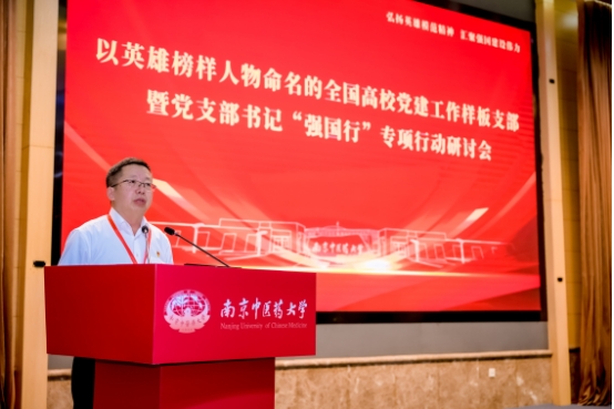 11月23日,以英雄榜樣人物命名的全國高校黨建工作樣板支部暨黨支部書記“強(qiáng)國行”專項(xiàng)行動研討會在南京中醫(yī)藥大學(xué)仙林校區(qū)召開。教育部思政司黨建處處長林成濤、江蘇省委教育工委組織處處長陳艷,南京中醫(yī)藥大學(xué)黨委書記喬學(xué)斌出席會議并講話,來自華東交通大學(xué)土木建筑學(xué)院詹天佑學(xué)生黨支部、華中師范大學(xué)馬克思主義學(xué)院惲代英班學(xué)生黨支部、呼和浩特民族學(xué)院數(shù)學(xué)與大數(shù)據(jù)學(xué)院黃大年式教師團(tuán)隊(duì)黨支部、南京中醫(yī)藥大學(xué)中西醫(yī)結(jié)合學(xué)院“王明艷”黨支部等以英雄榜樣人物命名的全國高校黨建工作樣板支部代表參加會議。
