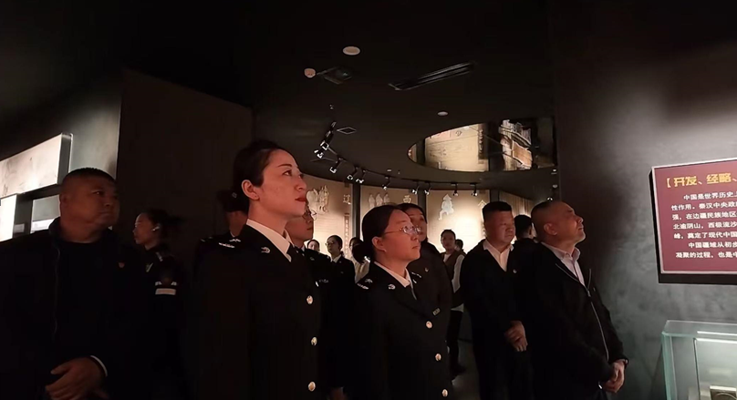 在我校鑄牢中華民族共同體意識教育館,講解員們結合館內(nèi)豐富的圖文、實物以及等教育資源,借助數(shù)字沙盤、全息投影等科技手段,帶領黨員們穿越千年時空,感受“我們從哪里來?”“我們是誰?”“我們要到哪里去?”等主題展區(qū)中各民族交往交融的壯闊畫卷。讓黨員們在沉浸式體驗中深化對“五個認同”的理解。此次活動以“聯(lián)學共建”為紐帶,將歷史資源、科技手段與基層黨建深度融合,黨員們在“看、聽、感、悟”中厚植家國情懷,進一步深化對鑄牢中華民族共同體意識的思想認識。