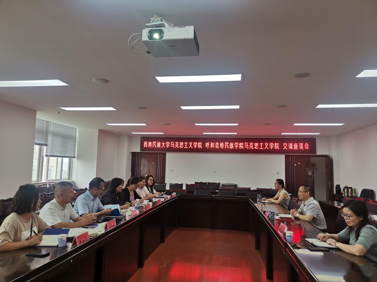 為深入推進習近平新時代中國特色社會主義思想主題教育,推動思想政治理論課教育教學改革和發展,馬克思主義學院副院長趙梅蘭帶領思政課教師一行7人,赴西南民族大學馬克思主義學院圍繞學科建設、思政課教學改革,就人才培養等問題開展調研。 西南民族大學馬克思主義學院劉松濤院長介紹思想政治理論課專題式教學改革和實踐教學探索、學科建設、團隊建設情況,周玉副院長介紹其研究生招生及培養情況,并討論雙方研究生培養方面合作共贏意向。