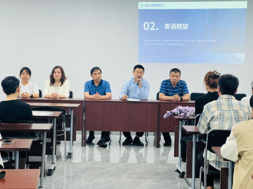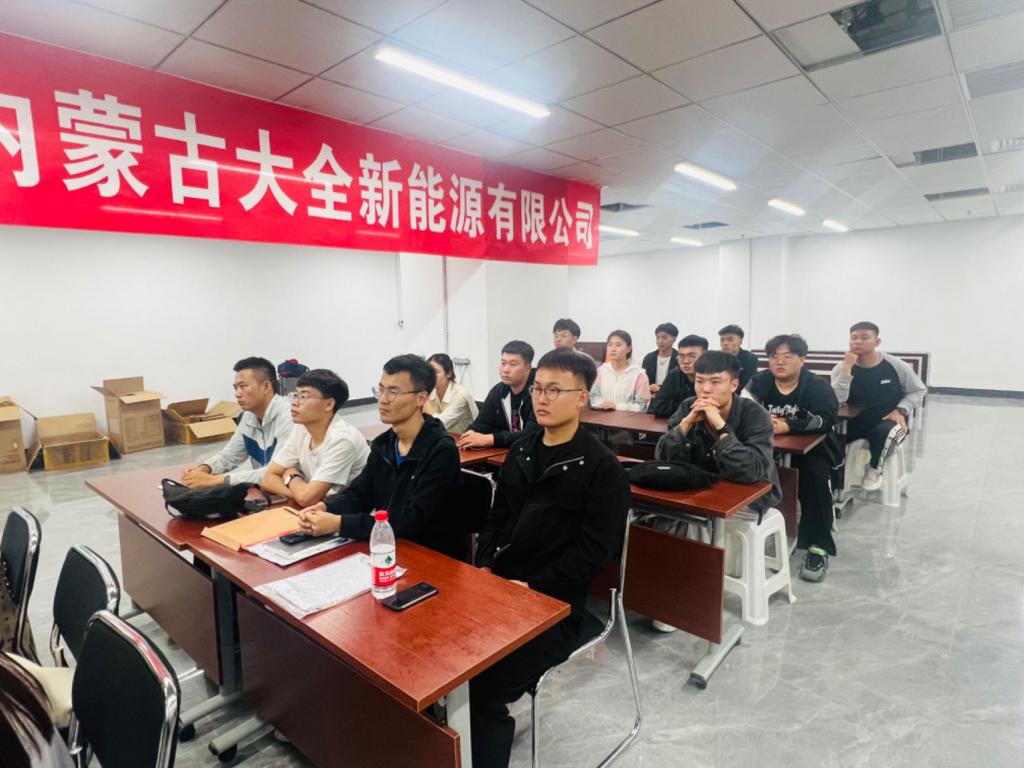 下午14時,院企雙方就產教融合、人才培養、科研合作交流等內容進行洽談并簽署了校企實習就業合作協議。隨后,企業為本次綜合實習學生舉辦了專場迎新會。內蒙古大全新能源有限公司人力資源部經理陳旭代表企業領導及全體員工對新伙伴的加入表示歡迎和祝賀,表示公司將不遺余力地為同學們搭建良好的發展平臺,并祝愿學生們在接下來的實習過程中,珍惜實習機會,學有所獲、習有所得,圓滿完成實習任務。會后,企業相關負責人陪同學院教師參觀了廠區工作區域、員工食堂及生活配套設施。學院黨總支書記鄂亞彬表示通過參觀廠區工作環境、企業領導介紹、生活食宿條件,感受到同學們在這里有很好的發展空間,企業規模及行業發展前景好,企業“家”文化讓同學們共鳴,同學們在這里歸屬感好,接下來一年校企同向育人育才,共同為國家新能源行業更好發展而努力。