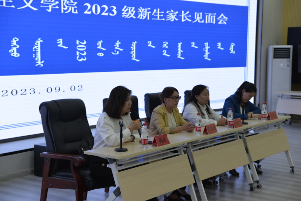 會議伊始,黨總支書記吳美榮代表全院師生向2023級新生和家長表示衷心的祝賀與熱烈的歡迎,并對學院概況、歷史沿革、學科建設、教學環境及師資隊伍等方面進行了全面的介紹。然后,馬克思主義學院副院長趙梅蘭介紹了思想政治教育專業前景及往屆學生的就業情況,并從學院教學管理、校園安全情況方面鼓勵同學們要樹立遠大的人生目標和追求,努力實現自身價值。學院黨總支副書記韓瓊介紹了學生管理相關要求和學院各類獎助學金的評定流程。最后,班主任白寶花著重分析了新生入校后在生活、學習等方面可能遇到的問題,提出了家長在大學生培養中常見的誤區,強調了家校聯動對學生培養的重要性。