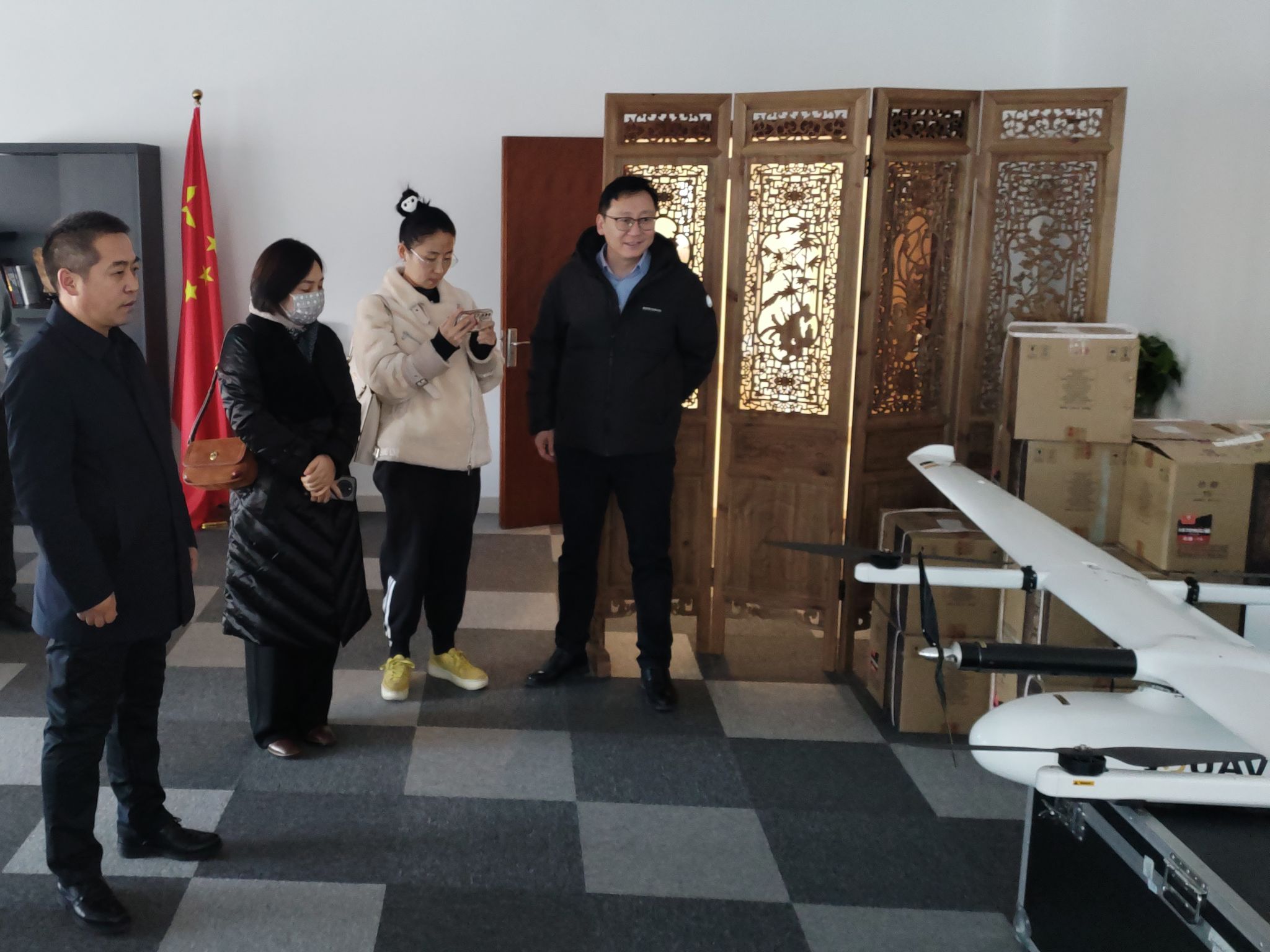 學(xué)院一行首先參觀了公司主營業(yè)務(wù)的設(shè)備展示,了解航拍領(lǐng)域的動(dòng)態(tài)前沿,隨后院企雙方就各自意向開展座談交流。