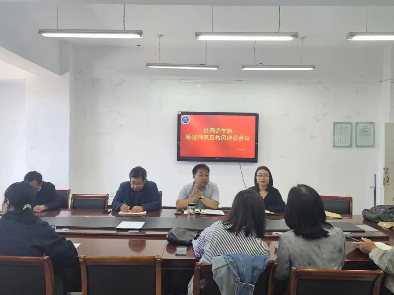 5月11日,外國語學院于都林樓611室召開師德師風及教風建設會議,會議由外國語學院副院長秦紅喜主持,外國語學院黨總支書記朱俊杰和全體教職工參加了此次會議。