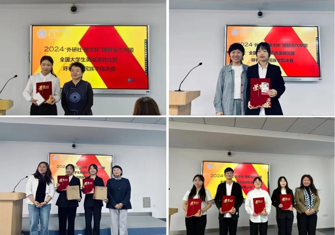 本次大賽邀請了內蒙古大學外國語學院副教授高友晗、副教授趙玲玲,內蒙古工業大學外國語學院副教授高帆副,我校外國語學院銀鈴教師、教授陳亞杰、副教授烏云斯日古楞副教授擔任評委。
