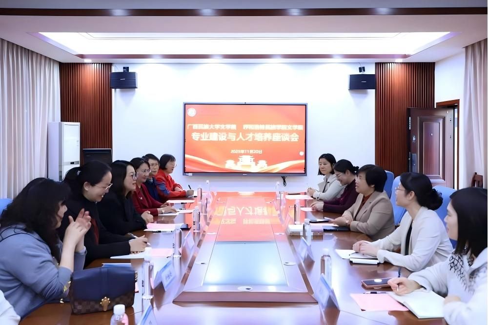 為科學謀劃“十五五”規劃發展目標,進一步優化人才培養方案,推動學院高質量發展,精準對接新時代教育改革與區域化建設的戰略需求,11月19日至22日,我校文學院院長高娃帶領專業負責人、教師代表和團總支書記一行6人先后赴廣西民族大學和廣西民族師范學院圍繞漢語言文學、漢語國際教育專業的人才培養、數智化建設、黨建融合與中華優秀傳統文化美育教育等方面開展調研學習。