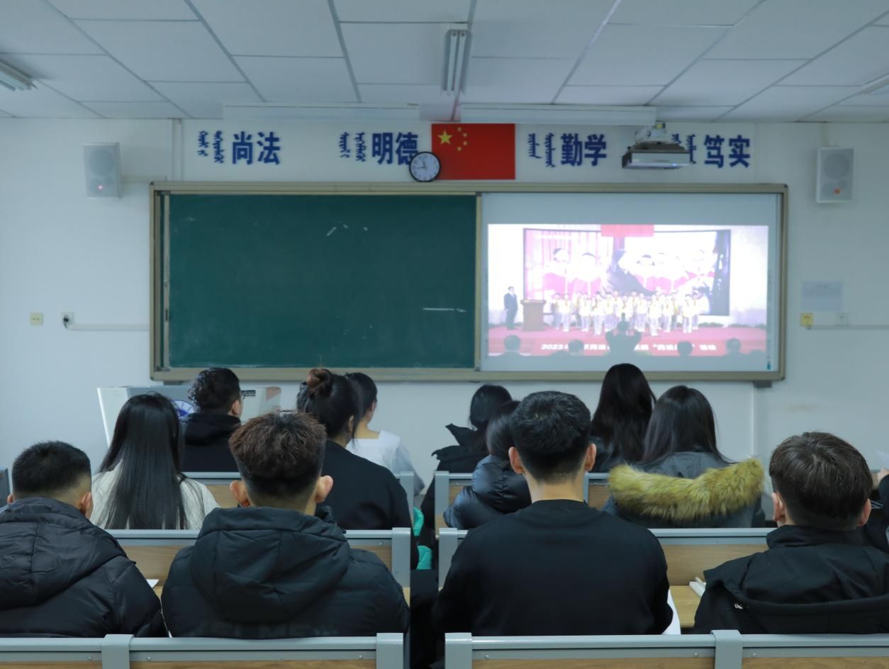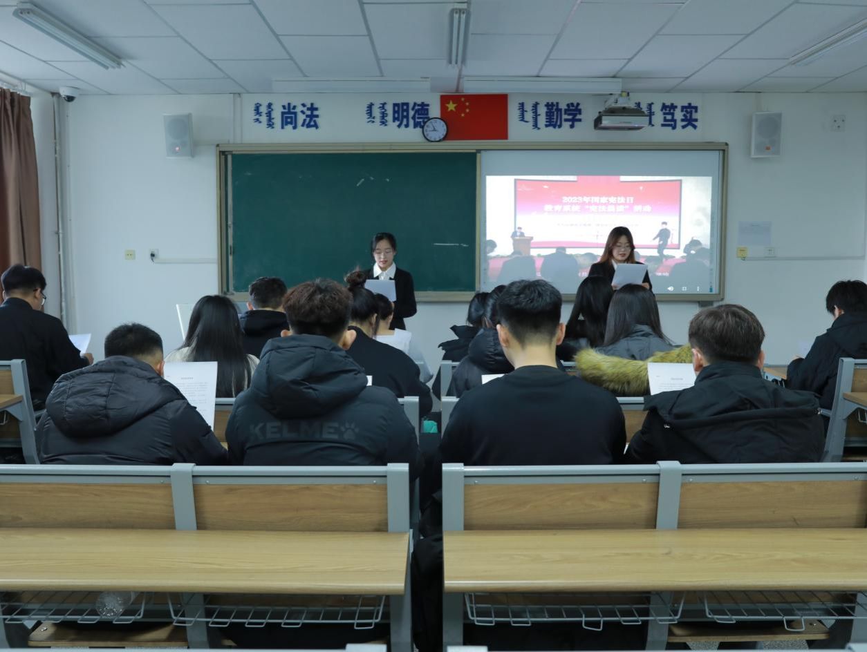 為認真學習宣傳貫徹黨的二十大精神,貫徹落實習近平法治思想,根據內蒙古自治區教育廳《關于開展2023年全區教育系統“憲法宣傳周”系列活動的通知》、學校開展“憲法宣傳周”系列活動的相關要求,法學院于12月7日在尚智樓教室開展了憲法晨讀活動,50余名師生參與晨讀。