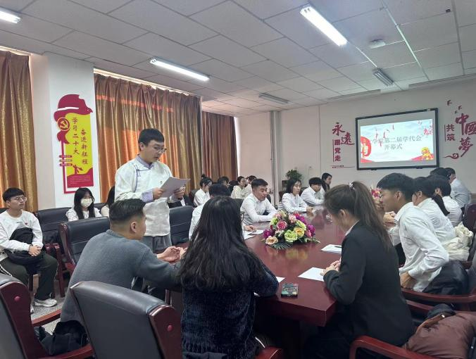 12月12日,文學院第二屆學生代表大會在尚智樓112會議室順利召開。團總支書記劉曉、輔導員寶力爾、校學生會主席團成員及全體學生代表參加,會議由學生代表小峰主持。