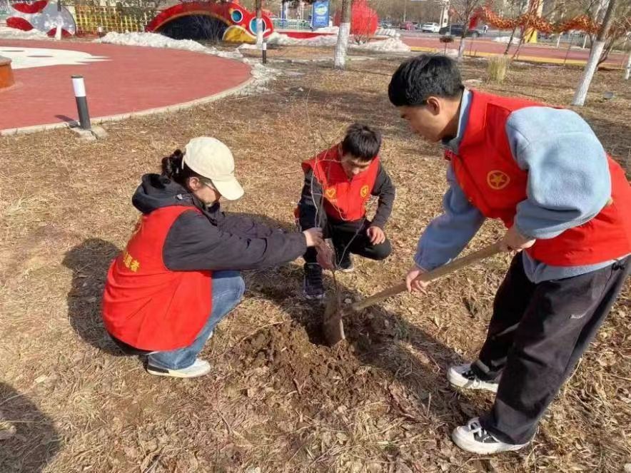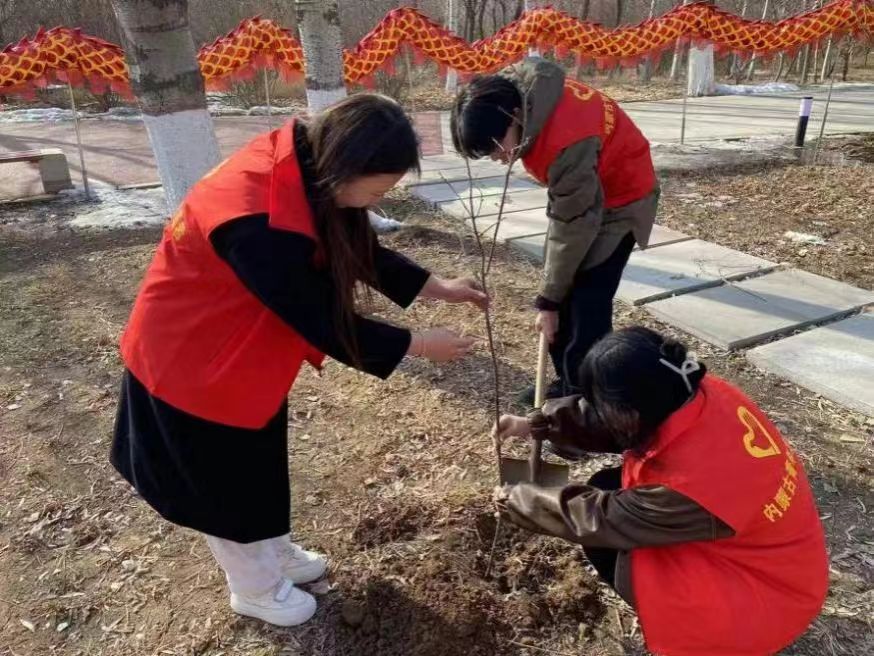十年樹木,聚木成林。為更好地踐行習近平總書記“綠水青山就是金山銀山”的生態理念,用實踐參與到北方重要生態安全屏障建設中來,3月12日,美術學院黨總支組織學生黨員,赴內蒙古“紅石榴”民族團結主題公園與北疆應急保障志愿服務總隊聯合開展了志愿植樹活動。