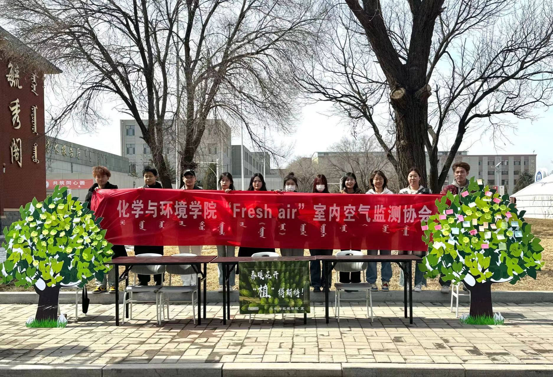 本次活動包括“線上答題送綠植”、“禁止焦‘綠’”寫寄語等環節。在和煦溫暖的春日陽光中,現場同學們都積極踴躍參與到活動中來,答題時刻氣氛熱烈;同學們以“春暖花開 ?‘植’得期待”為主題,將自己對植樹造林、環境保護、未來期待等美好向往的寄語貼到大樹上,并以簽名的方式為本次活動留下自己的印跡。