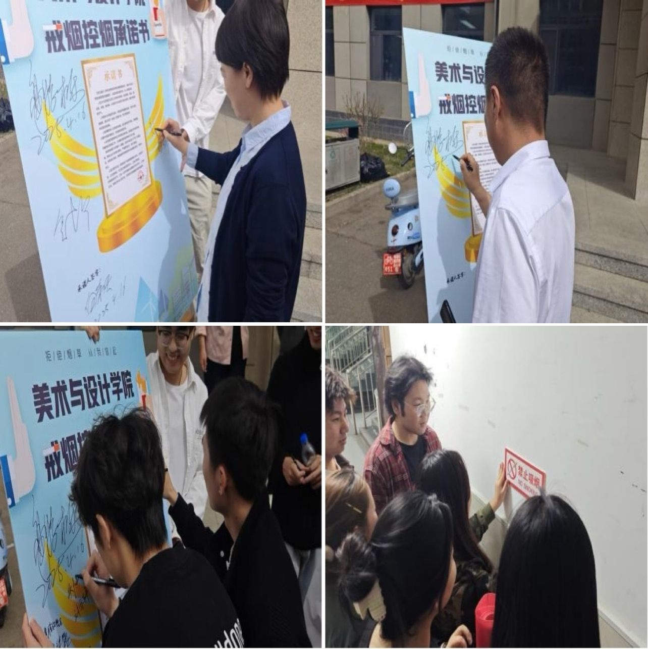 為倡導健康生活方式,營造無煙校園環境,美術與設計學院于4月16日組織開展“掐滅指尖煙火星,點亮校園文明燈——共赴無煙新旅程”主題控煙宣傳活動。學院領導、教師代表及四十余名學生通過簽名承諾、張貼禁煙標識等形式,共同傳遞控煙理念,助力文明校園建設。