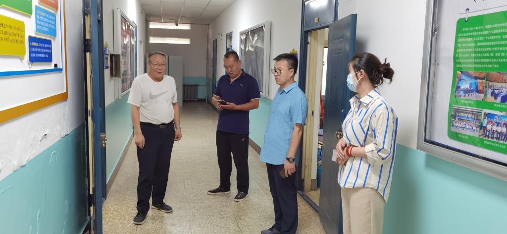 2022年8月21日上午,教務處額爾敦布和處長、佟繁榮副處長與教務處相關人員一同對開學前的教學準備工作進行了檢查。額爾敦布和處長先后檢查了崇正樓、尚智樓、都林樓、綜合樓等教學樓,并對教材發放、教室桌椅、投影設備、實驗室以及教室衛生進行了抽查。額爾敦布和處長指出,教學管理人員應該加強對教室、實驗室、公共機房、琴房、畫室等教學用房和多媒體設備的管理,積極與后勤管理處協調做好教室內消殺工作,確保新學期開學各項工作有序進行。隨后,額爾敦布和處長和佟繁榮副處長到二級學院檢查了開學前疫情防控與教學工作的準備情況。
