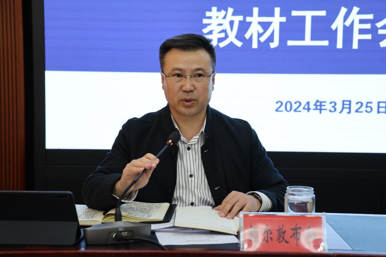 3月25日下午,學校在辦公樓4樓會議室召開了2024年教材工作會議。會議由校黨委委員、副校長額爾敦布和主持。