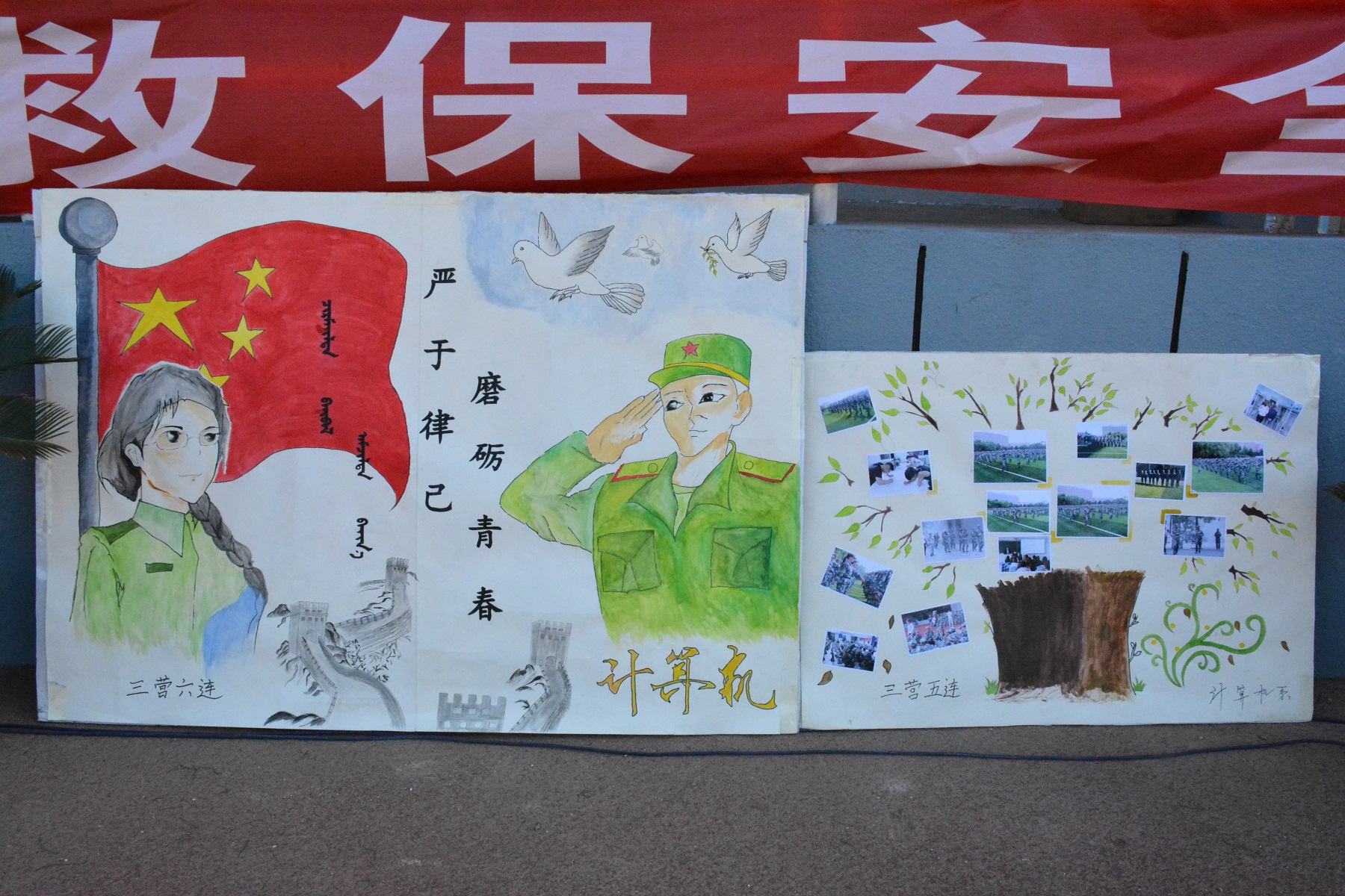 板報比賽以軍訓生活為主題,用以展示同學們軍訓生活中的點點滴滴和收獲。在板報評比活動中,27個連隊的板報整齊擺放在主席臺下方。經評委們認真、公正的評選,最終,二營九連(數學系)、二營四連(管理系)、二營二連(美術系)、三營五連(計算機系)、二營五連(管理系)、一營五連(外語系)等6個連隊的成績排在前六位。