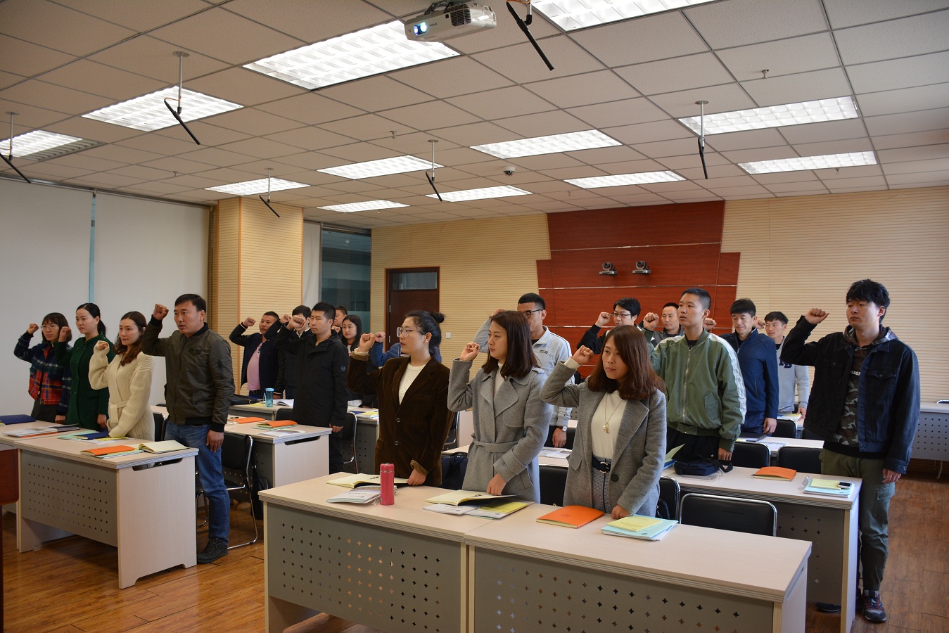 為提高新招聘專職輔導員的整體素質,讓輔導員盡快熟悉學生工作,全面了解學校整體情況和學生管理工作,人事處、學生處于10月18日—10月22日,在綜合樓802教室舉辦了為期40學時的新進專職輔導員崗前培訓班。培訓班以輔導員宣誓拉開帷幕。