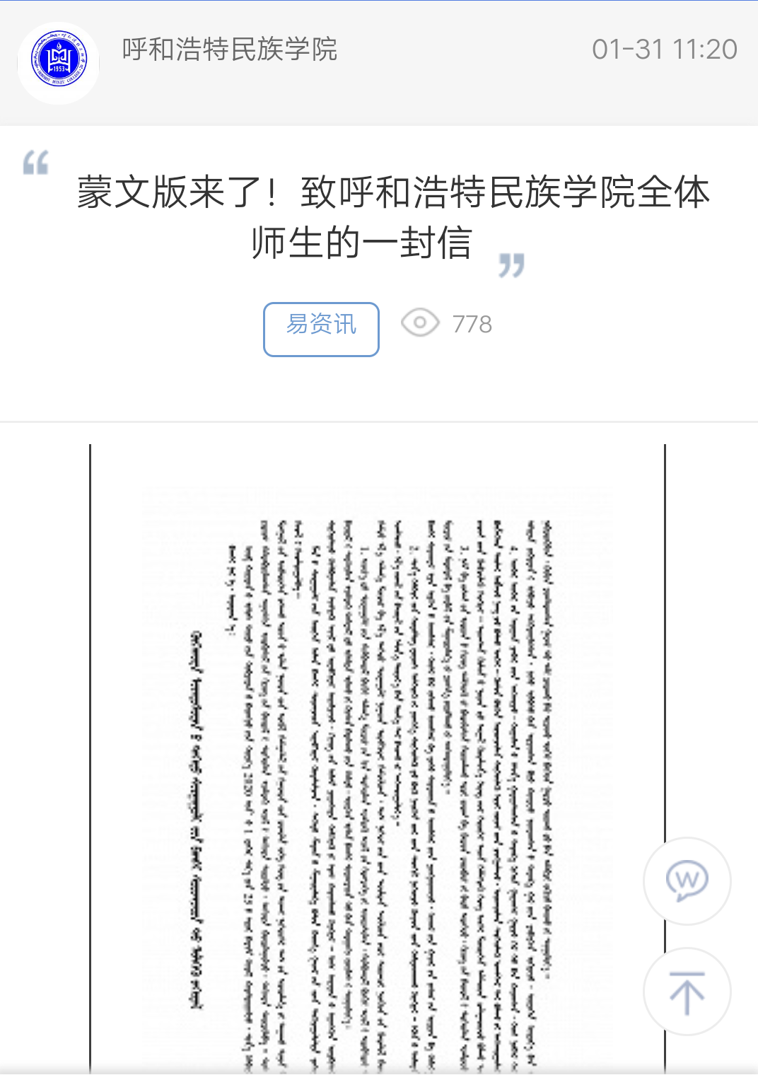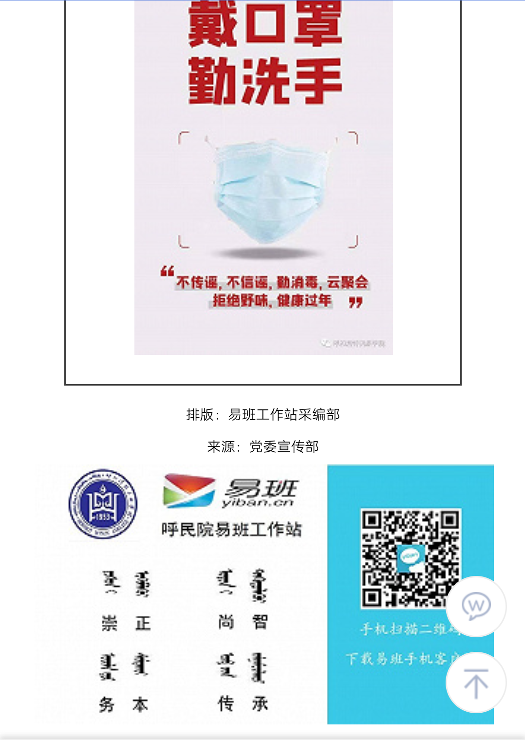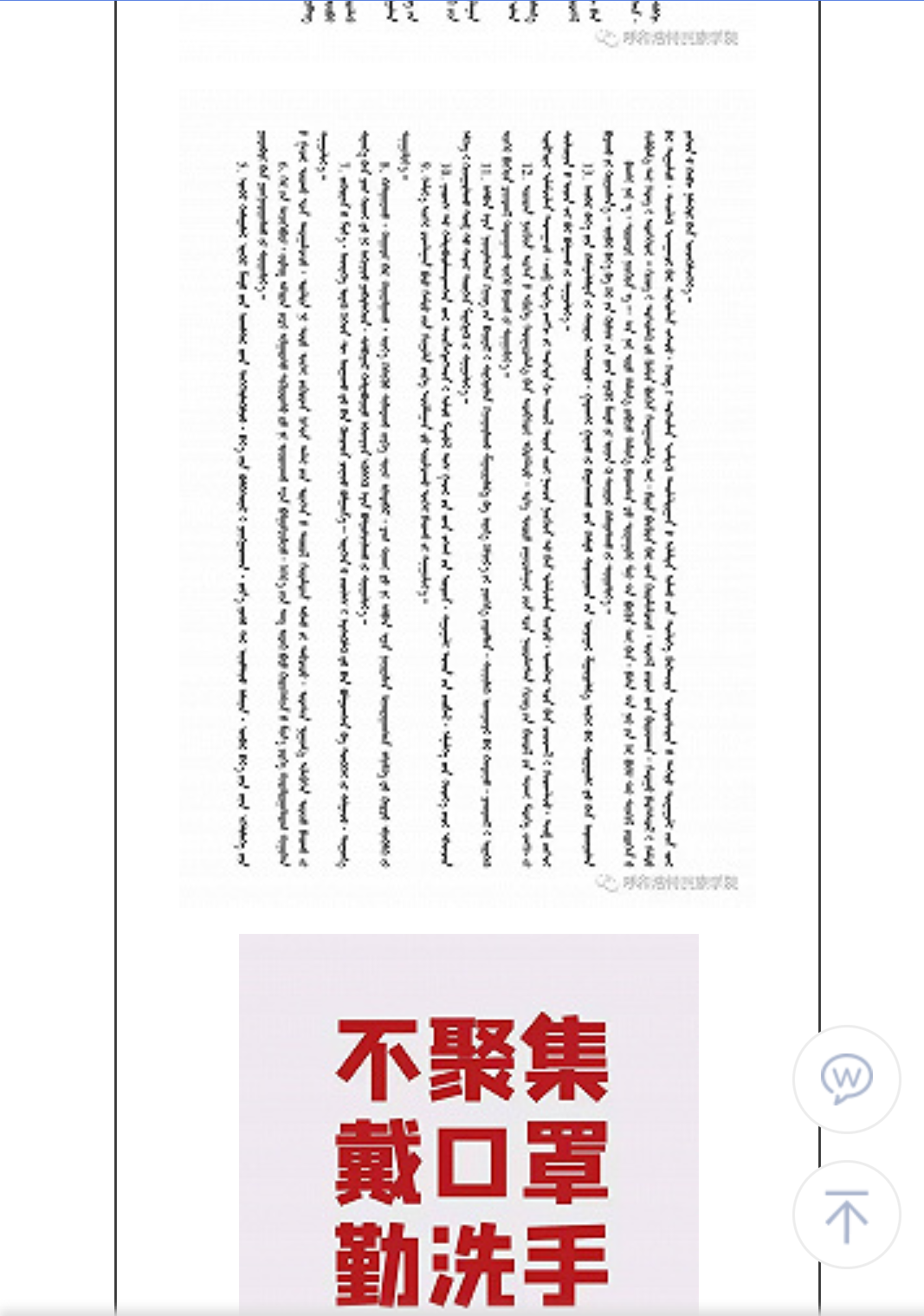 上一條:正確預(yù)防新型冠狀病毒(蒙漢文版) 下一條:呼和浩特民族學(xué)院關(guān)于做好學(xué)生預(yù)防 新型冠狀病毒肺炎工作措施