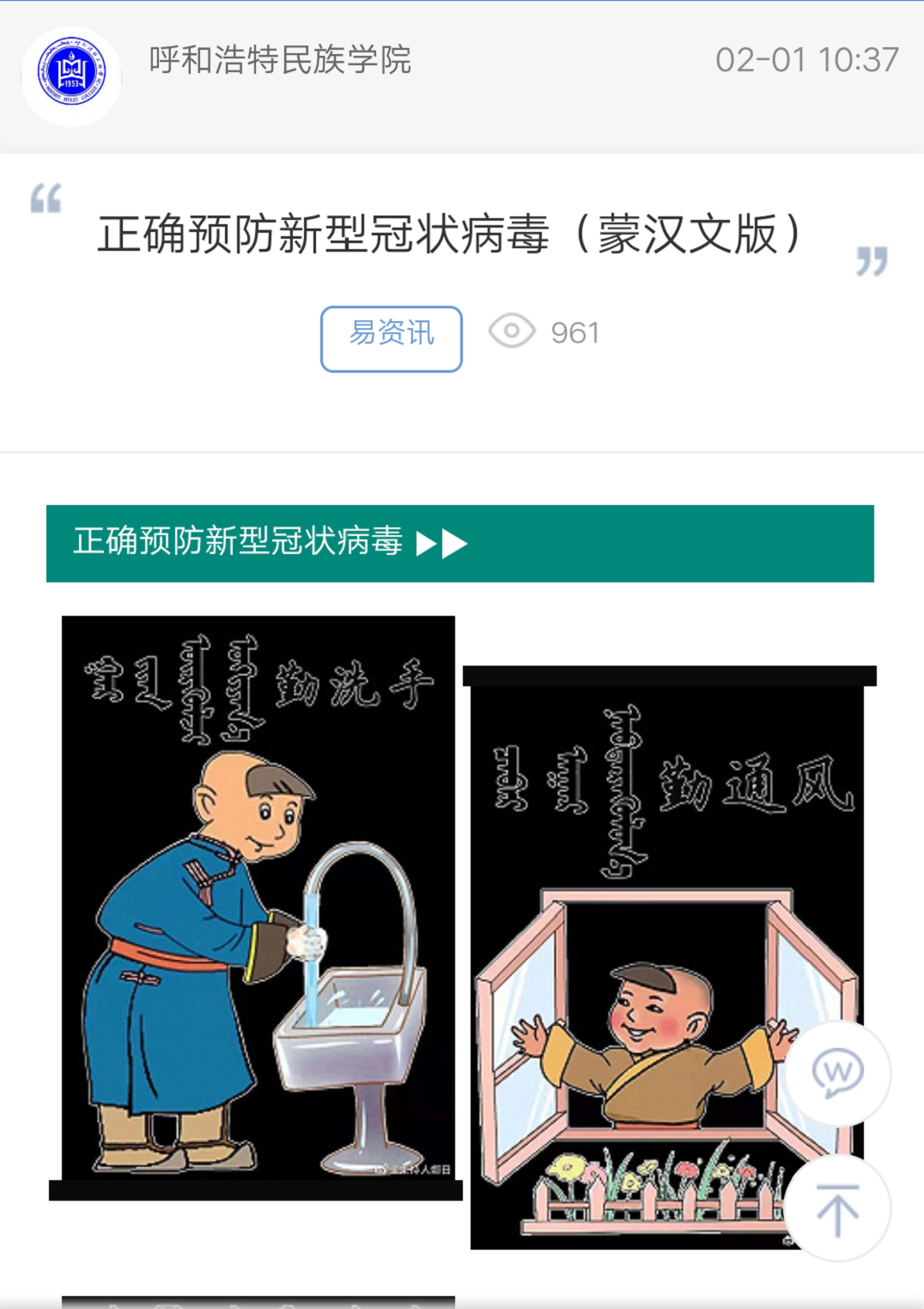 上一條:呼和民院-防疫公開課全新上線 下一條:蒙文版來了!致呼和浩特民族學院全體師生的一封信