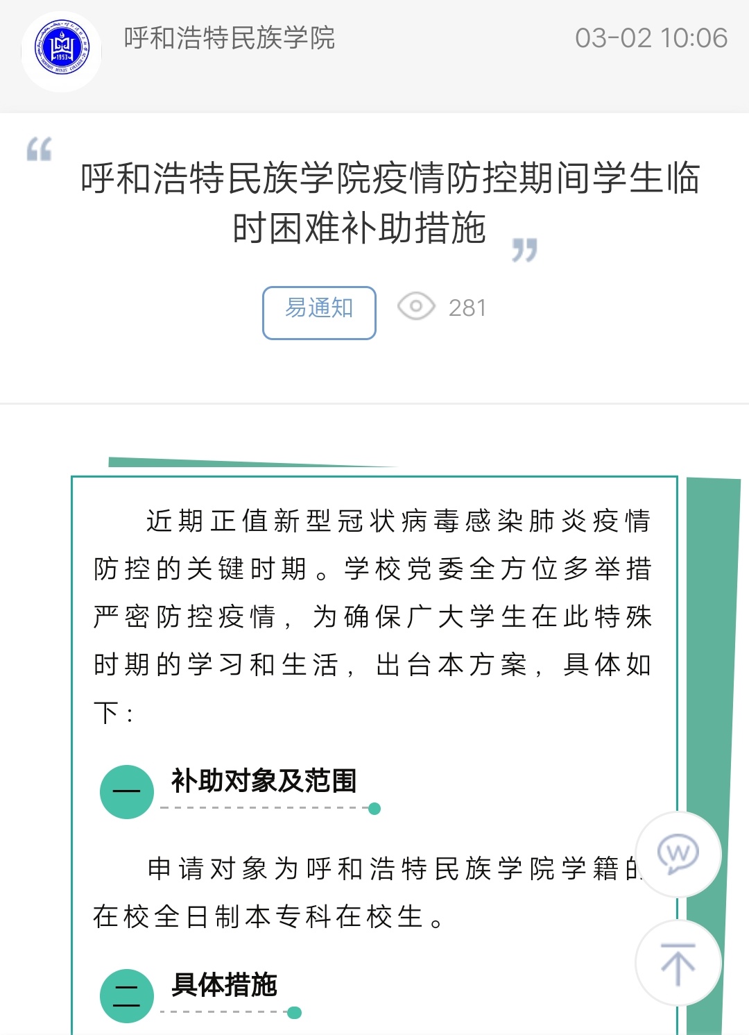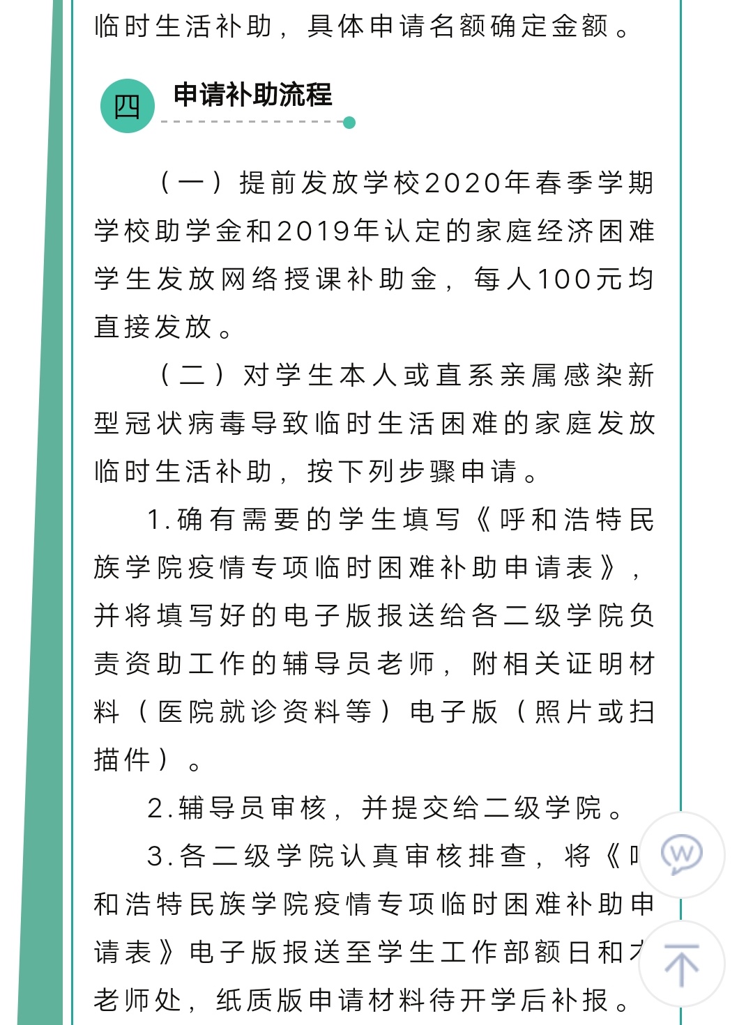 呼和浩特民族學院疫情防控期間學生臨時困難補助措施