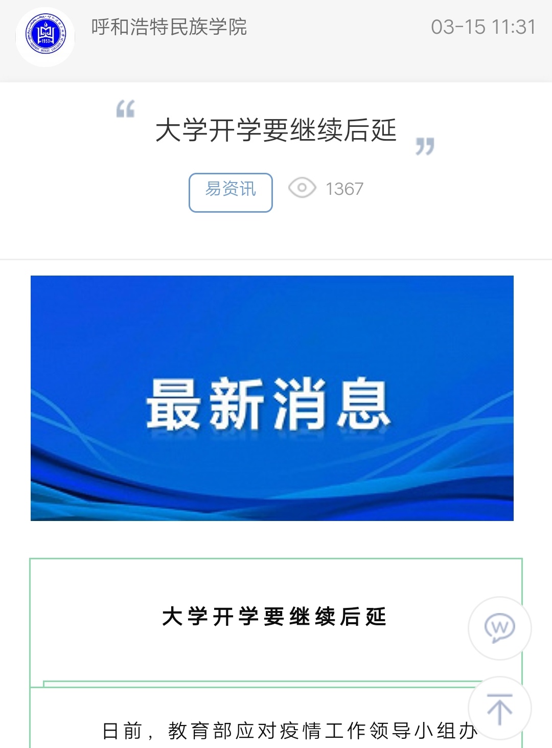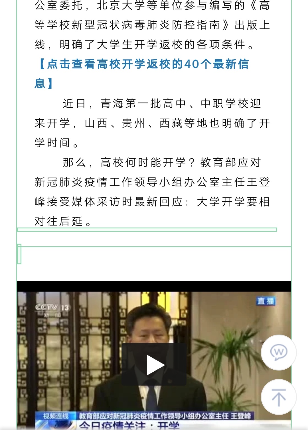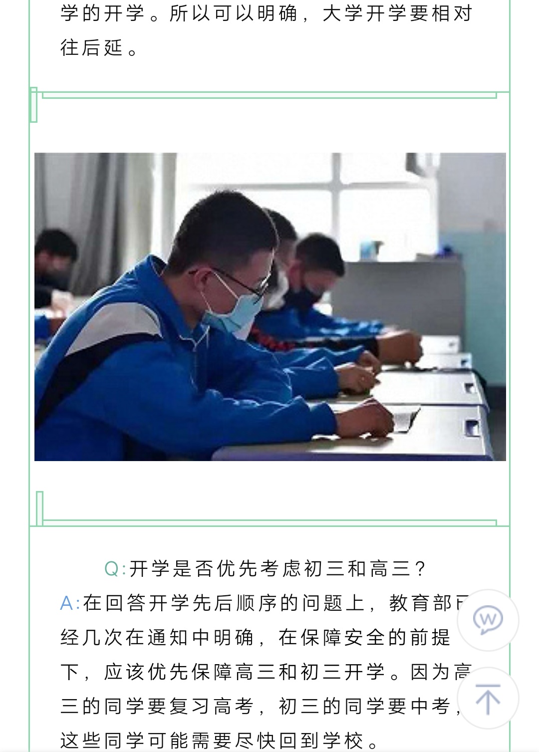 上一條:全區(qū)大中小學(xué)幼兒園開學(xué)時(shí)間繼續(xù)推遲 下一條:教育部:高校開學(xué)后,學(xué)生不出校、一日三報(bào)告、上課戴口罩、外賣不入校………