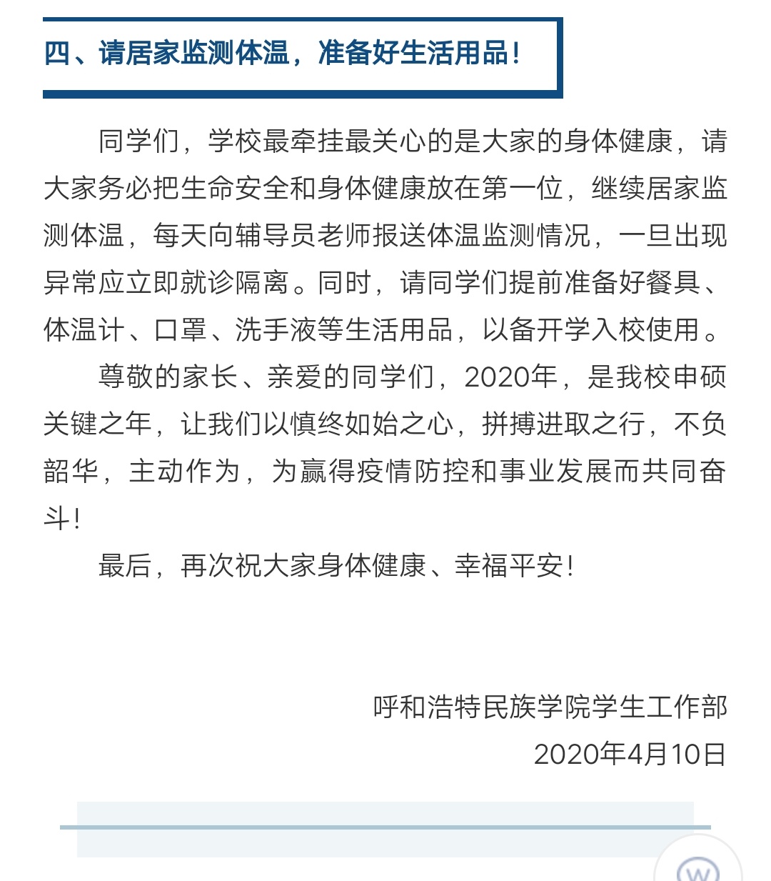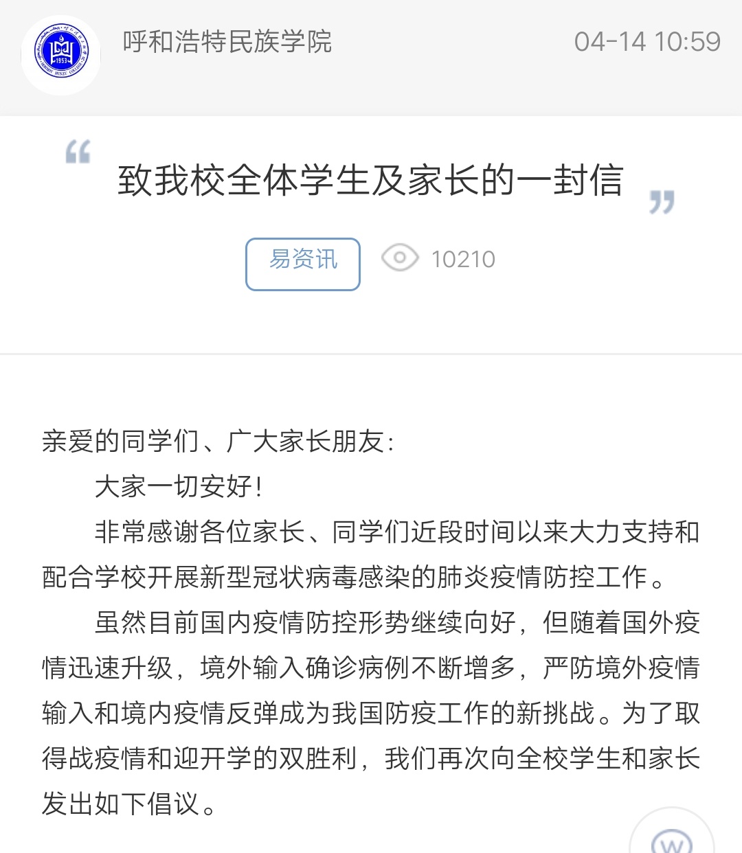 上一條:致我校全體學生和家長的一封信(蒙文版)