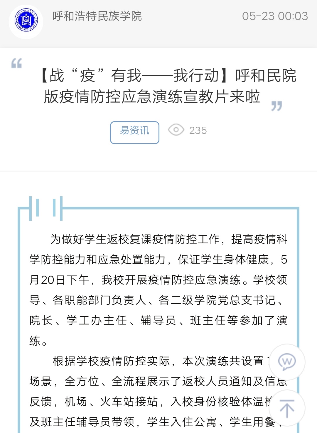 上一條:我校開(kāi)展疫情防控應(yīng)急演練 下一條:【戰(zhàn)“疫”有我——我行動(dòng)】校園即將重啟,敬請(qǐng)期待