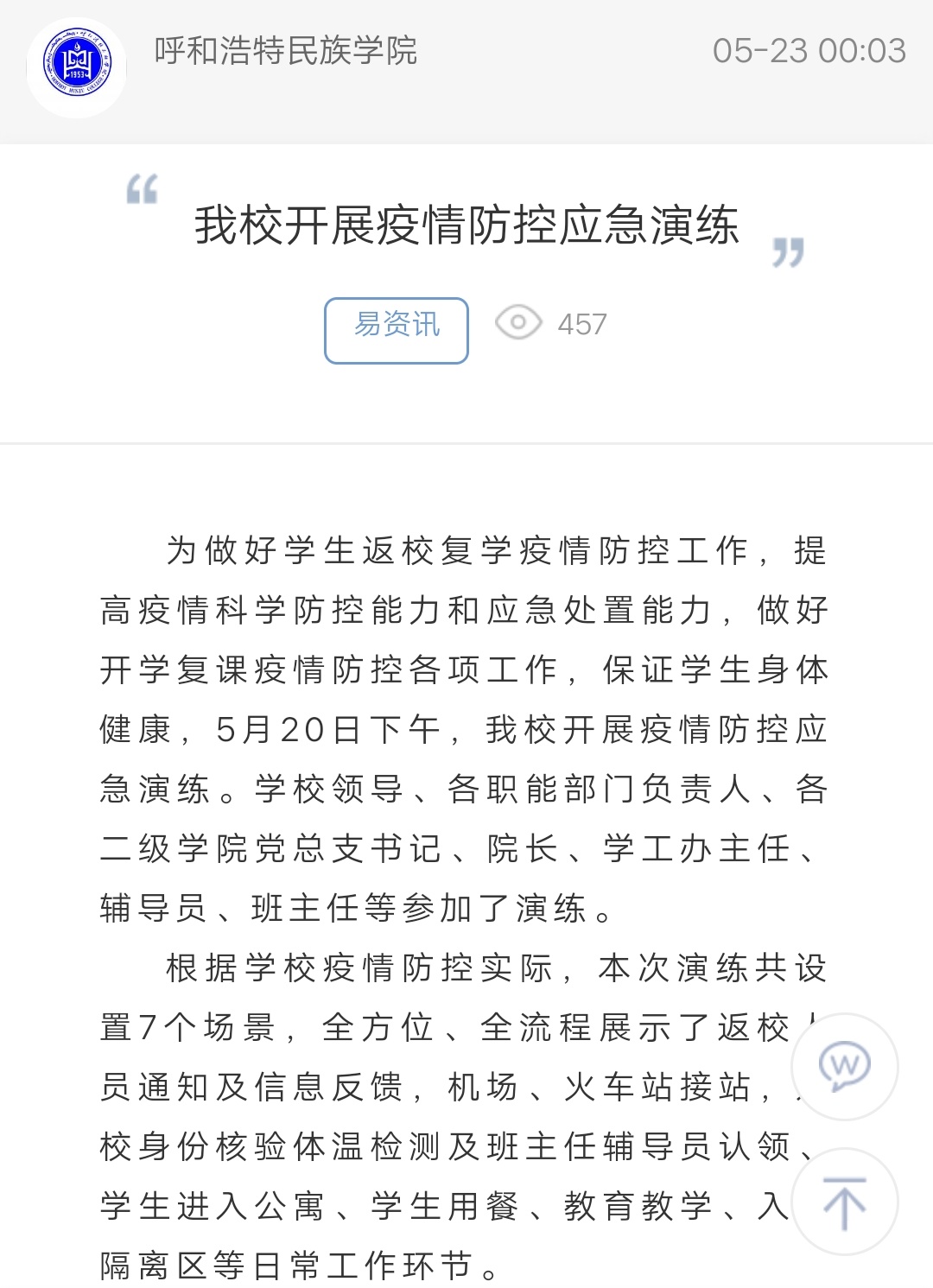上一條:【戰“疫”有我——我行動】歡迎回家——呼和民院迎來首批返校學生 下一條:【戰“疫”有我——我行動】呼和民院版疫情防控應急演練宣教片來啦