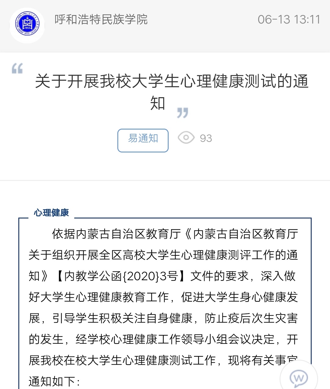 上一條:呼和浩特民族學(xué)院 中國大學(xué)生心理健康測評系統(tǒng) 下一條:我校舉辦“‘云’中輔導(dǎo),‘疫’中成長”主題輔導(dǎo)員專題培訓(xùn)