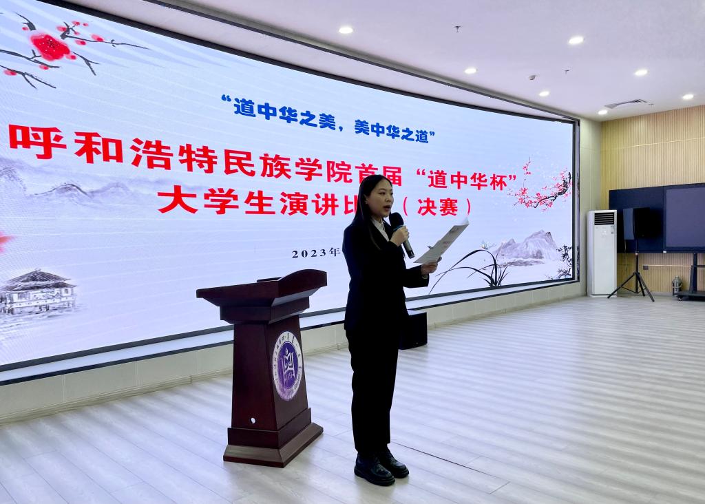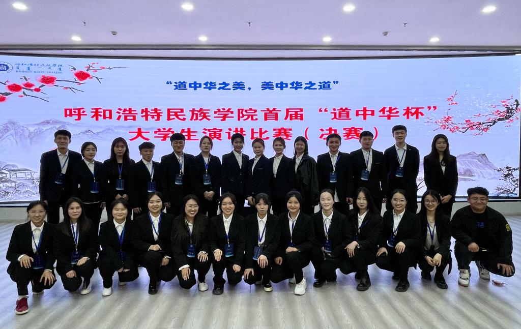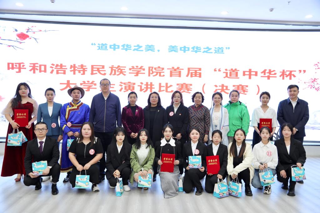 為深入學(xué)習(xí)宣傳貫徹黨的二十大精神和中央民族工作會(huì)議精神,教育引導(dǎo)各民族大學(xué)生堅(jiān)守中華文化立場(chǎng),聚焦鑄牢中華民族共同體意識(shí)主線,傳承中華優(yōu)秀傳統(tǒng)文化,宣傳展示中華文明的精神標(biāo)識(shí)和文化精髓,同時(shí)為選拔、推薦優(yōu)秀學(xué)生代表參加國(guó)家民委舉辦的首屆“道中華杯”民族(地區(qū))院校大學(xué)生演講比賽,3月31日下午,我校在北圖書(shū)館一樓報(bào)告廳舉辦首屆“道中華杯”大學(xué)生演講比賽(決賽)。比賽邀請(qǐng)到了內(nèi)蒙古工業(yè)大學(xué)黨委學(xué)生工作部部長(zhǎng)金燕飛,內(nèi)蒙古財(cái)經(jīng)大學(xué)黨委學(xué)生工作部部長(zhǎng)張宏天,我校黨委學(xué)生工作部部長(zhǎng)楊福梅、黨委宣傳部副部長(zhǎng)張海峰、就業(yè)處副處長(zhǎng)威娜擔(dān)任評(píng)委。各學(xué)院輔導(dǎo)員、參賽選手、學(xué)生代表近150人參加了此次活動(dòng)。