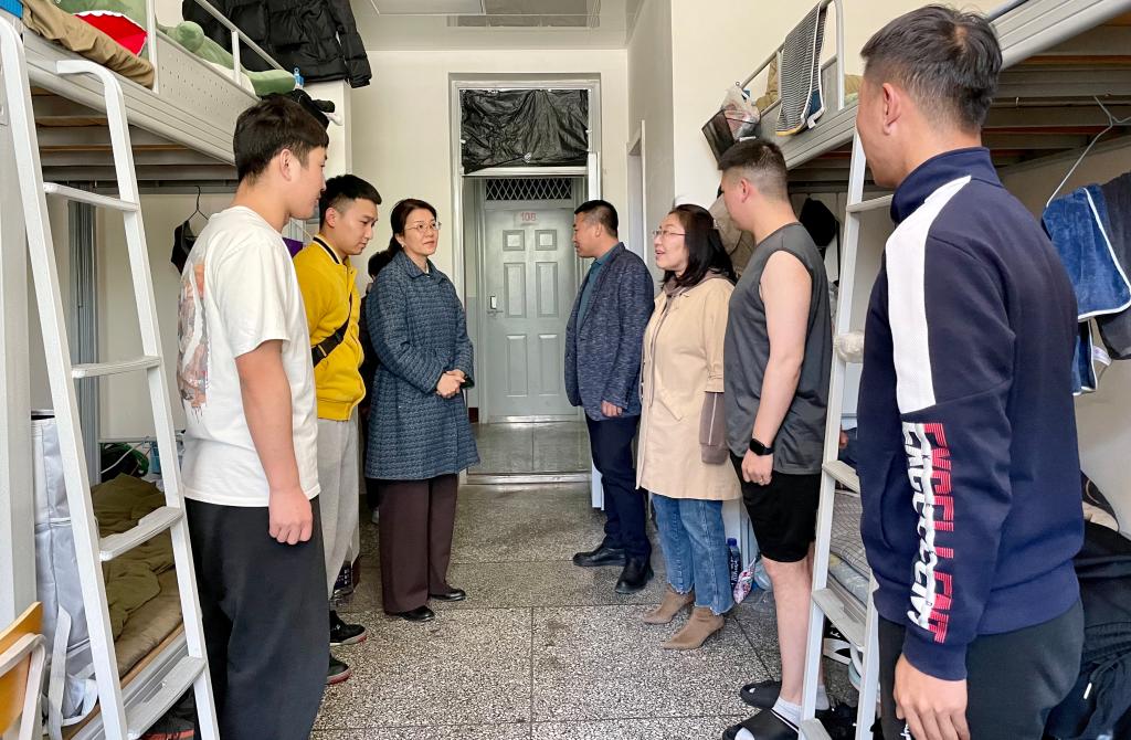為進(jìn)一步做好對學(xué)生的教育、管理與服務(wù),排查學(xué)生宿舍安全隱患,了解學(xué)生的生活狀態(tài),4月26日下午,納麗娜副校長及學(xué)生工作部相關(guān)人員開展了檢查走訪學(xué)生公寓活動。