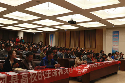 4月18日晚,我系學風建設動員大會在圖書館一樓報告廳隆重召開。學生處副處長陳青春應邀出席會議,傳媒系全體師生300余人參加了大會。