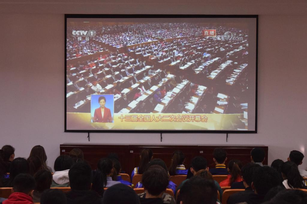 3月5日上午9時,美術(shù)系組織師生200余人在美術(shù)系四樓階梯教室集體觀看十三屆全國人大二次會議開幕會的視頻直播,聆聽了國務(wù)院總理李克強作政府工作報告。