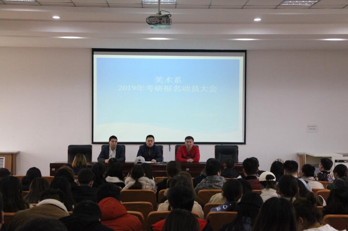 為進一步調動美術系2016級學生考研積極性,力求在2019年研究生考試中有新的突破。3月1日下午,美術系在美術樓四樓階梯教室召開了2019年考研動員暨2018年考研總結大會。美術系副主任高特木樂主持會議,美術系2016級全體班主任、輔導員以及2016級全體學生參加了動員大會。