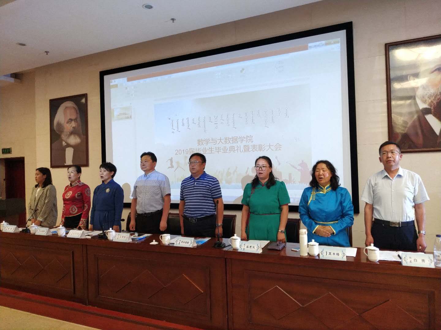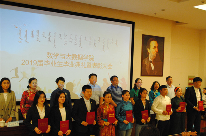 2019年6月12日,數學與大數據學院2019屆畢業生畢業典禮暨表彰大會在圖書館一樓報告廳舉行。數學與大數據學院黨總支書記布和朝魯、黨總支副書記郝喜鳳、副院長王海清、副院長額爾敦其其格、辦公室主任烏云其其格、小學數學教育教研室主任其木格、經濟數學教研室主任白秀及班主任、任課老師、學生代表參加了本次大會。會議由輔導員金玲老師主持。