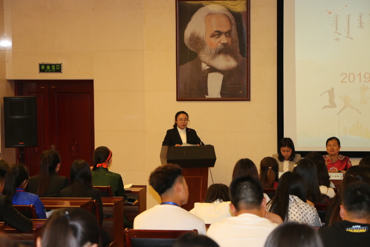 會上,額爾敦其其格副院長為大家公布2019屆畢業生名單。教師代表董鵬飛博士作為畢業班班主任表達了對同學們誠懇的建議和衷心的祝福,希望同學們能夠學以致用,盡快適應社會,提高能力,完善自我。考研學生代表張錦瑤同學分享考研經歷,鼓勵學弟學妹們找準人生坐標,努力進取。畢業生代表孟凌杰同學做代表發言,深切表達了對母校以及恩師們的感激之情,祝愿母校學術百花齊放,教書育人桃李芬芳,祝福學弟學妹們奮勇前行乘風破浪。在校生代表阿麗雅同學表達了對學長學姐們內心的感激和最真摯的祝福。