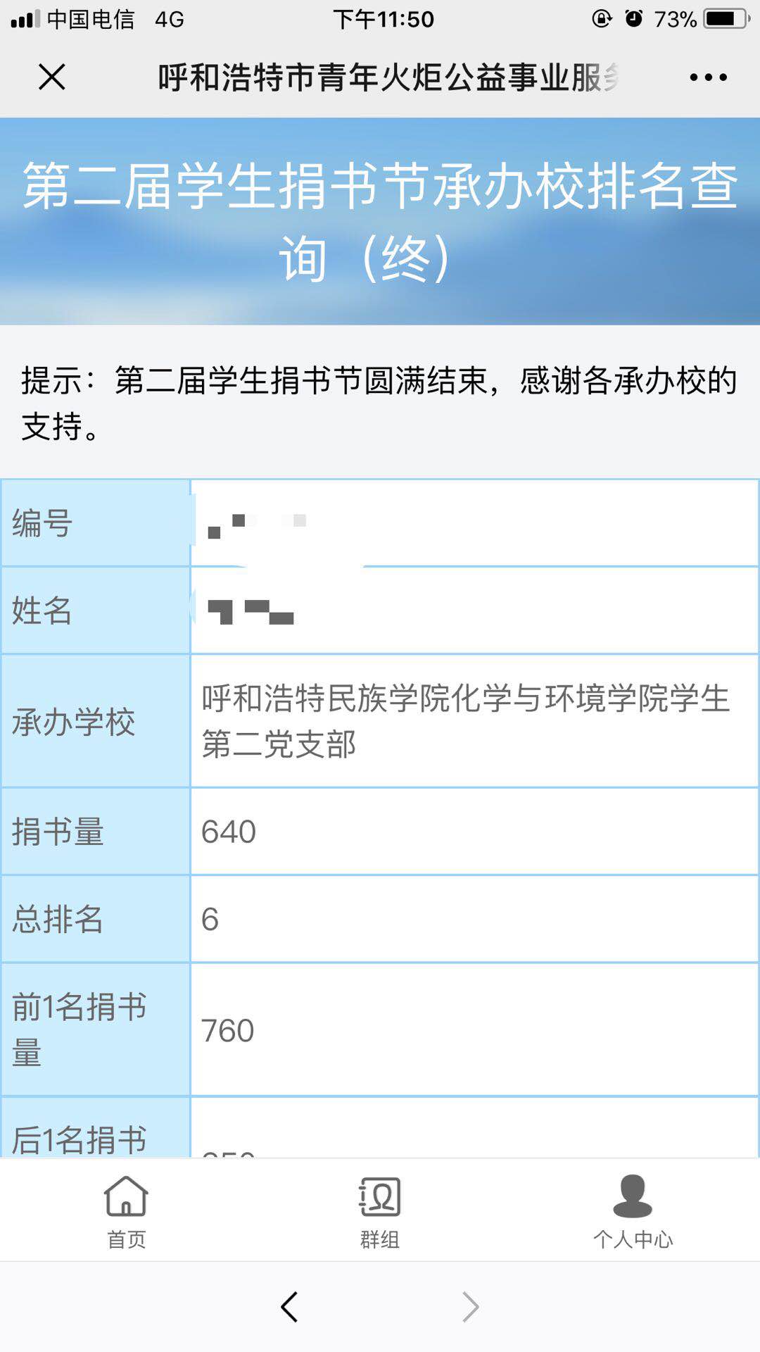 6月5日—6月15日,化學與環(huán)境學院學生第二黨支部承辦“贈書留香,讓知識接力”學生捐書節(jié)活動。此次活動征集書本讀物640余本,所捐書籍用來幫助郊區(qū)及邊遠山區(qū)的孩子們。通過本次活動,用愛心傳出一份情,送出一本書,成就一個夢。