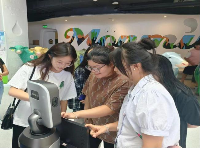 學生與“蒙牛”機器人互動,與科技近距離接觸