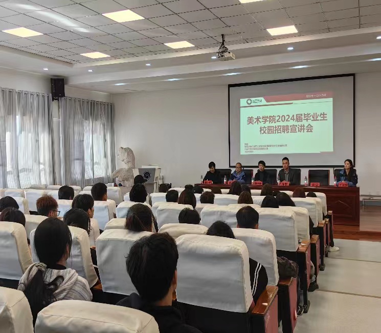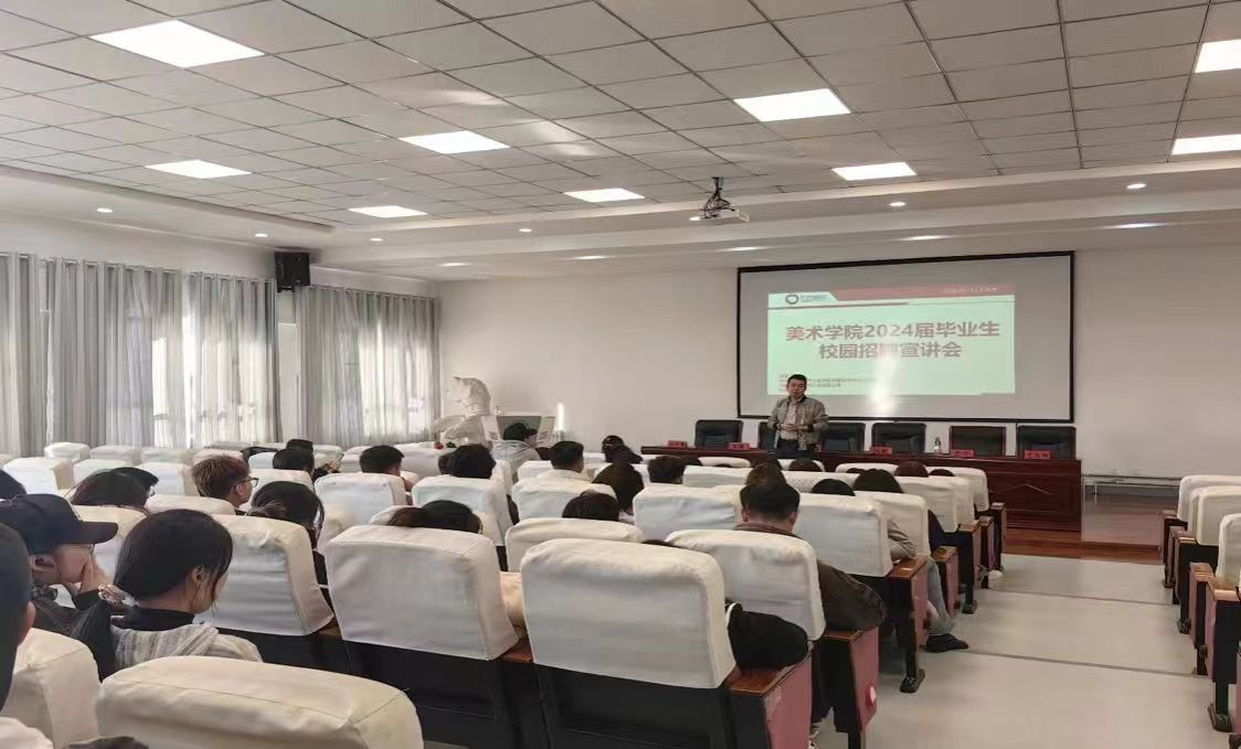 為不斷增強畢業(yè)生就業(yè)意識,有效推動就業(yè)工作,10月30日下午美術學院在美術樓階梯教室召開了2024屆畢業(yè)生校園招聘宣講會。美術學院黨總支書記吳利春、副處級組織員吉木斯、校企合作教學部郭強、就業(yè)部王永清以及2020級設計專業(yè)在校畢業(yè)生80余人參加了招聘宣講會。