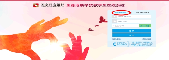 (一)進入www.csls.cdb.com.cn網(wǎng)址,點擊“生源地助學貸款學生在線系統(tǒng)”。