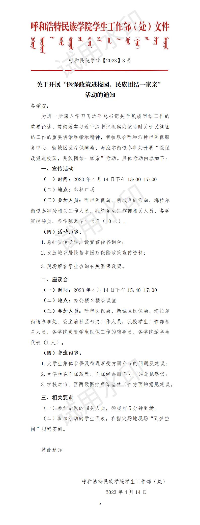 上一條:關于開展“醫保政策進校園,民族團結一家親” 活動的通知 下一條:關于舉辦呼和浩特民族學院首屆“道中華杯” 大學生演講比賽的通知