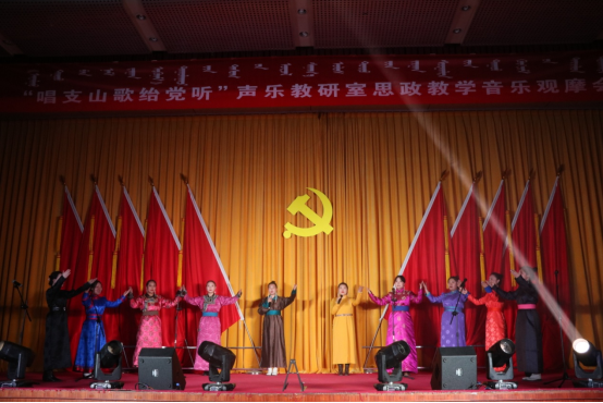 5月15日,音樂學(xué)院聲樂教研室結(jié)合黨史學(xué)習(xí)教育“學(xué)史明理、學(xué)史增信、學(xué)史崇德、學(xué)史力行”的目標(biāo)要求,貫徹落實習(xí)近平總書記關(guān)于民族工作、推廣使用國家通用語言文字的重要論述和對內(nèi)蒙古工作重要講話重要指示批示精神,鑄牢中華民族共同體意識,于演藝廳舉辦了“唱支山歌給黨聽”聲樂教研室思政教學(xué)音樂觀摩會。