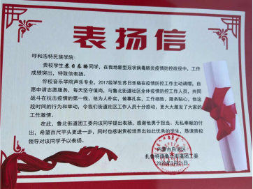 新年伊始,新型冠狀病毒感染的肺炎疫情席卷而來,全國各地疫情防控工作形勢(shì)嚴(yán)峻作為大學(xué)生的我們也應(yīng)該積極奉獻(xiàn)自己的一份力量2020年的鐘聲已經(jīng)敲響,萬紫千紅的春天已經(jīng)不遠(yuǎn)了,我相信在全國人民的共同努力下,我們一定能打贏這場(chǎng)“戰(zhàn)役。在這個(gè)緊張危急的關(guān)頭呼和浩特民族學(xué)院音樂學(xué)院學(xué)子毅然決然的走到了志愿前線,堅(jiān)定頑強(qiáng)的為祖國奉獻(xiàn)自己的一份力量!